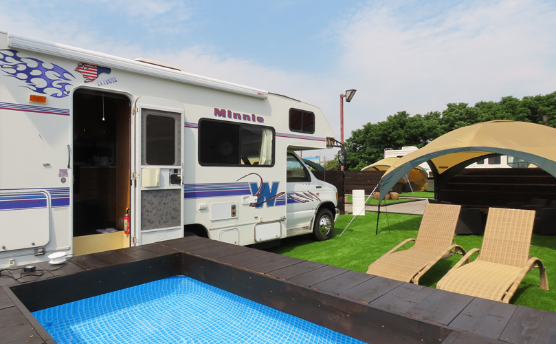 キャンピングカーに宿泊するグランピング気分を味わえるバーベキュー付きの宿泊・日帰りプランがございます。